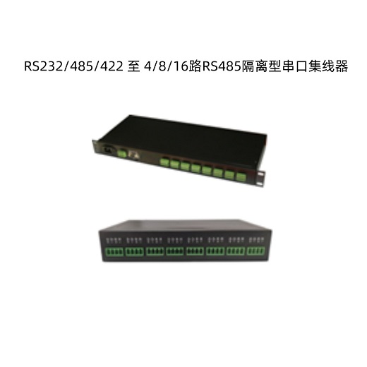 產(chǎn)品簡介: 工業(yè)級 RS232/485/422 至 4/8/16路RS485隔離型串口集線器是一款專為解決復雜環(huán)境下RS-485大系統(tǒng)要求設計的總線分割集中器。該產(chǎn)品支持傳輸速率高達115.200bps,采用外接電源供電,內(nèi)設1.500W浪涌保護,非常適合戶外工程應用。RS485接口采用接線端子連接,傳輸距離1200米、性能穩(wěn)定。廣泛用于高速公路收費系統(tǒng),道路監(jiān)控系統(tǒng)及電力采集系統(tǒng)中,是一款性能卓越,性價比高的串口轉換產(chǎn)品。 可提供星型RS485總線連接。用戶可以輕易改善RS485總線結構,這一性能大大提高了現(xiàn)有RS485網(wǎng)絡的可靠性,有效縮短了網(wǎng)絡的維護時間。多串口服務器合理的利用本產(chǎn)品可以助您設計出獨特的總線網(wǎng)絡連接系統(tǒng)。