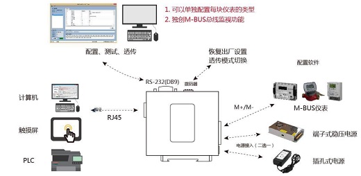 產(chǎn)品簡介: 產(chǎn)品概述:將M-BUS協(xié)議轉(zhuǎn)換為標準Modbus-RTU協(xié)議,方便外接PLC、觸摸屏、工控軟件。 獨有特點:不同類型儀表可同時接入、RS-232和RS-485可同時使用、可做M-BUS透傳設(shè)備。 適用場景:M-BUS儀表數(shù)據(jù)采集與應(yīng)用,標準接口,易于使用。 ·支持歐標EN1434-3與國標CJ/T188-2004 ·支持Modbus-RTU協(xié)議@RS-232/RS-485 ·5、20、100個標準負載(8mA負載電流@36V)(8mA、30mA、150mA負載電流@34V) ·工業(yè)級EMC標準/進口芯片與焊接工藝