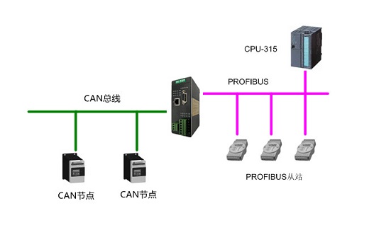 產(chǎn)品簡介: 凡具有CAN總線接口,并且具有2.0A或2.0B標準CAN通信協(xié)議的現(xiàn)場設(shè)備,都可以使用本產(chǎn)品實現(xiàn)現(xiàn)場設(shè)備與PROFIBUS的互連。如:變頻器、電機啟動保護裝置、智能高低壓電器、電量測量裝置、各種變送器、智能現(xiàn)場測量設(shè)備及儀表等設(shè)備接入到S7-300等ProfibusDP網(wǎng)絡(luò)系統(tǒng)。