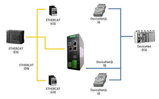 產(chǎn)品簡(jiǎn)介: HT3S-ECS-DNS是一款EtherCAT 從站功能的通訊網(wǎng)關(guān),主要是將DEVICENET設(shè)備接入到EtherCAT 網(wǎng)絡(luò)中。本網(wǎng)關(guān)連接到兩個(gè)不同的網(wǎng)絡(luò),在DEVICENET端做從站,在EtherCAT 端作為從站使用,即可以實(shí)現(xiàn)兩個(gè)不同協(xié)議的網(wǎng)絡(luò)做數(shù)據(jù)交換。