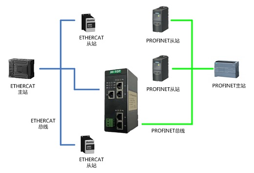 產(chǎn)品簡介: 本網(wǎng)關(guān)實(shí)現(xiàn)EtherCAT轉(zhuǎn)PROFINET功能,能夠?qū)崿F(xiàn)連接EtherCAT主站PLC的設(shè)備如儀表、變頻器、伺服等接入到S7-1200、S7-1500、CPU315-2PN/DP、S7-400等PROFINET網(wǎng)絡(luò)系統(tǒng),實(shí)現(xiàn)PROFINET網(wǎng)絡(luò)與EtherCAT網(wǎng)絡(luò)的數(shù)據(jù)交互。
