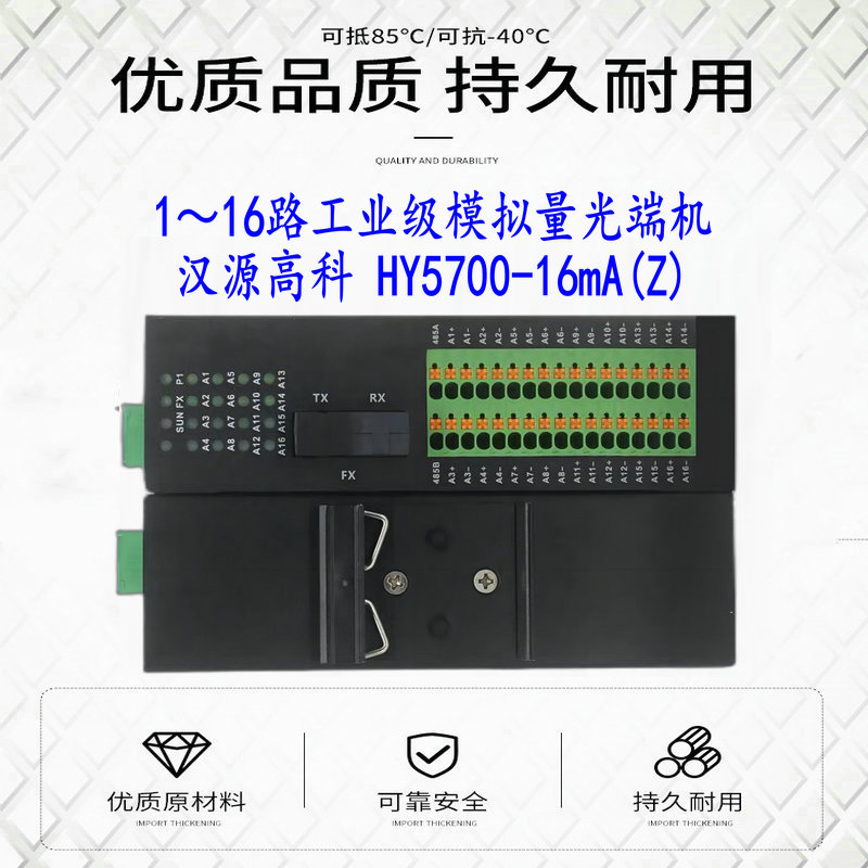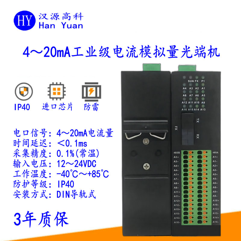 產(chǎn)品簡介: 漢源高科工業(yè)級4~20mA電流模擬量光端機有著一些關(guān)鍵且優(yōu)異的產(chǎn)品性能,彰顯著它在工業(yè)數(shù)據(jù)傳輸方面的強大實力。